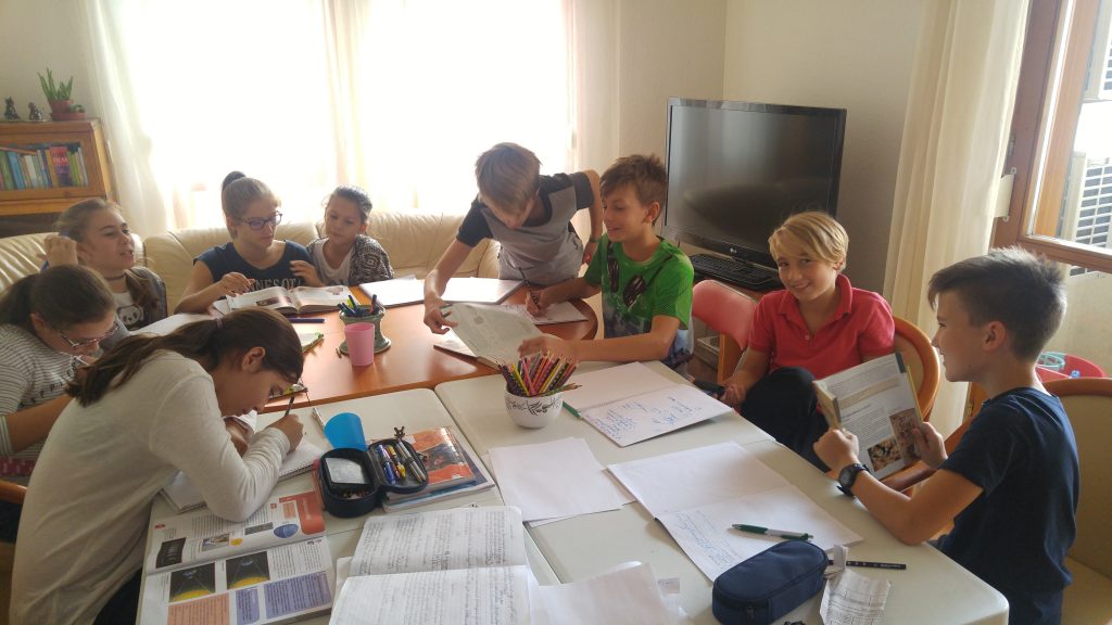 A tanfolyam második felében – ami a mi kis csoportunknak a hetedik év elejébe is belecsúszott – elkezdtünk rendesen, csak a saját szövegeinkkel, megtanulandó leckéinkkel foglalkozni. Kiemelném, hogy sok tanfolyammal ellentétben a foglalkozást vezető pedagógus mindenkinek személyesen segített a házifeladatokban, de ha szükség volt rá, még túlórázott is velünk.